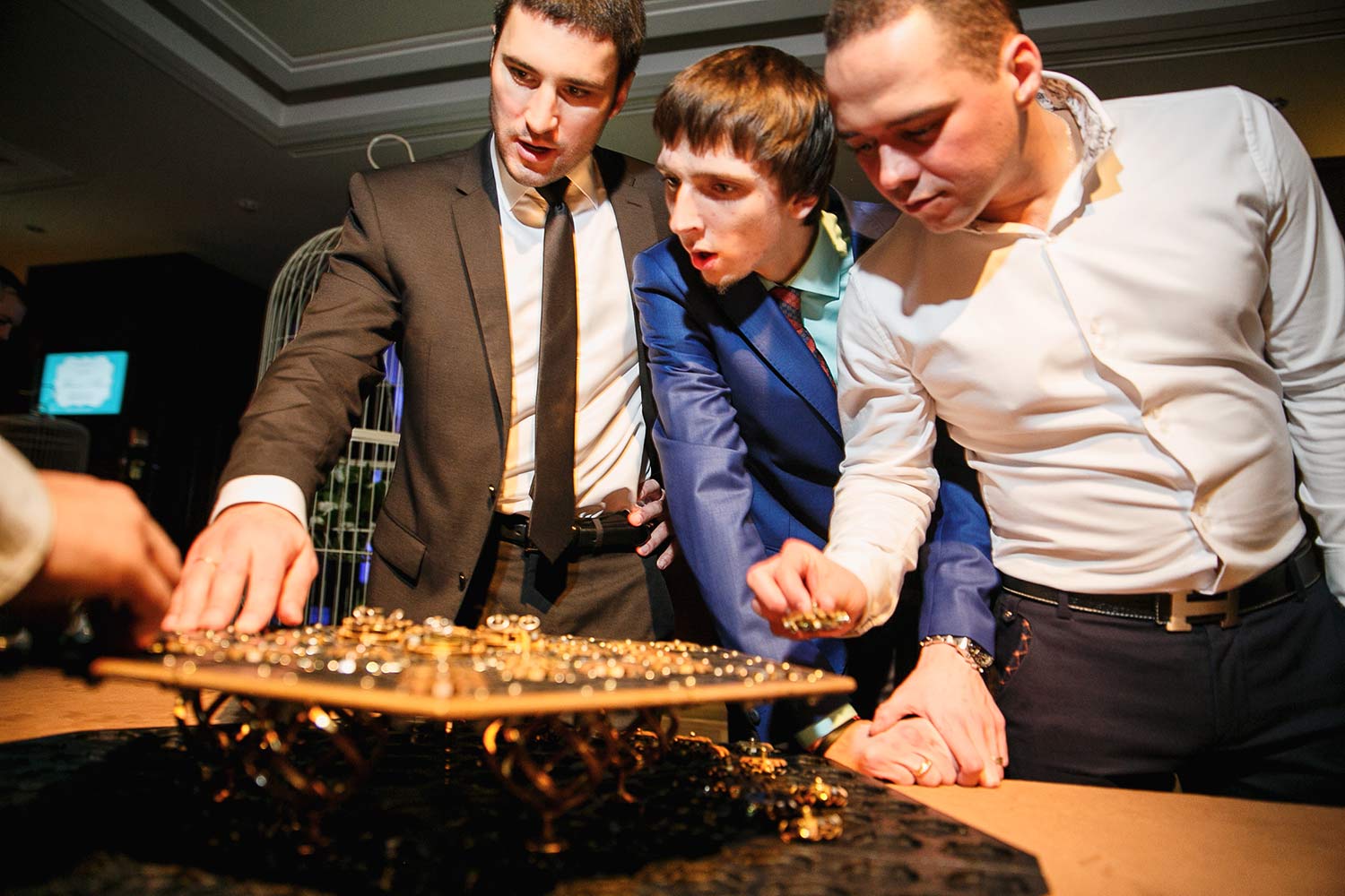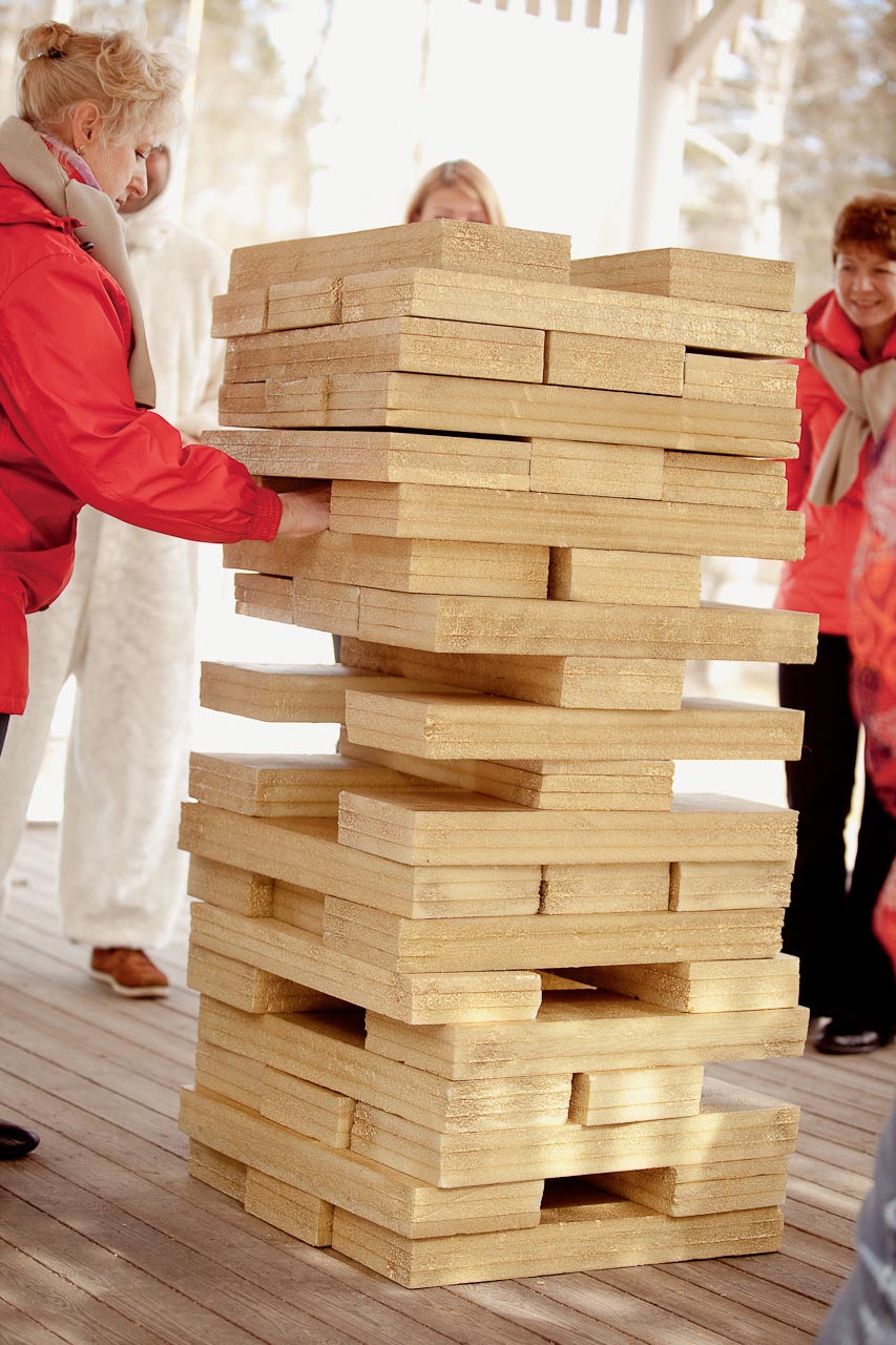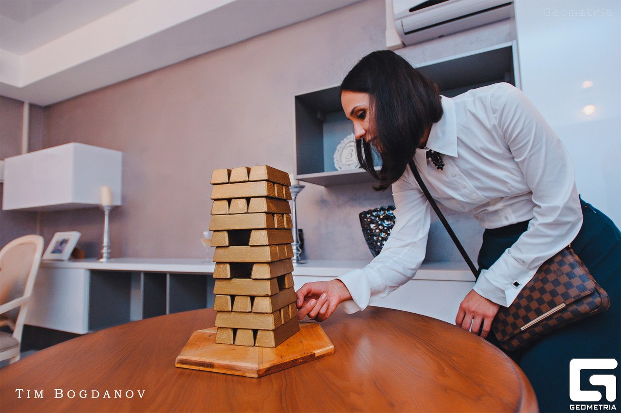 Перед игроком и Мастером расположена пирамида из золотых слитков. Мастер вытаскивает любой из нижних слитков и перемещает его наверх пирамиды. То же самое повторяет игрок. Виновник падения пирамиды считается проигравшим.