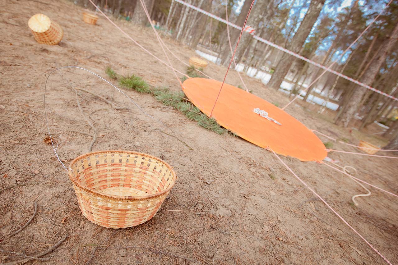 Мастер и игрок выставляют яйца разного размера на гвоздики, соревнуюсь на время.